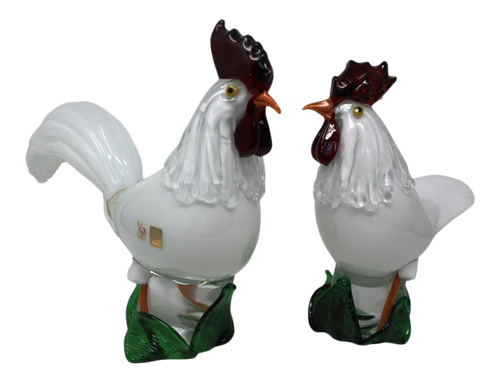 Oscar Zanetti - Murano Glass Rooster & Hen by Zanetti