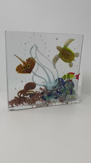 Add a touch of elegance to your home decor with this beautiful Aquarium. This is a true masterpiece of hand-formed Murano Glass artistry.  Each sea creature is made by hand in this detailed and difficult process!