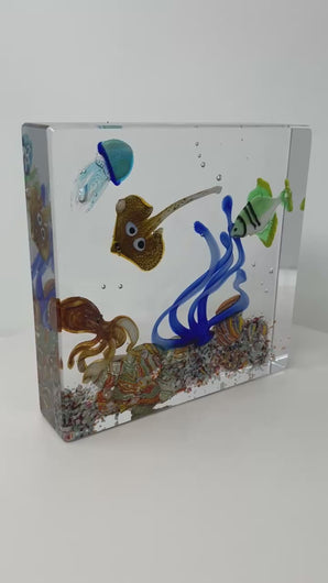 Add a touch of elegance to your home decor with this beautiful Aquarium. This is a true masterpiece of hand-formed Murano Glass artistry. Each sea creature is made by hand in this detailed and difficult process!