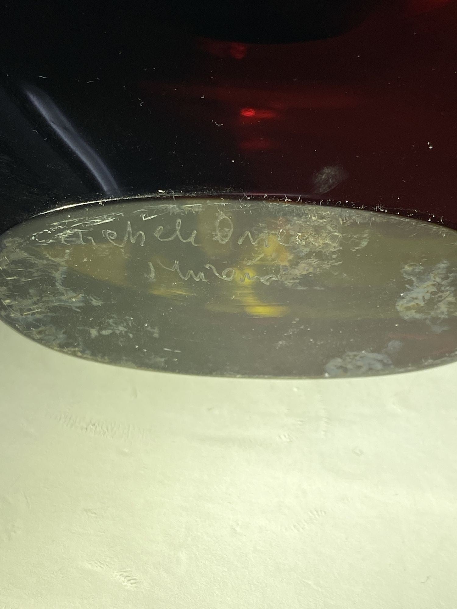 Very attractive Sommerso-style Murano Glass Heart Vase by the furnaces of Oball. Measures 8.5" x 9". Signed.