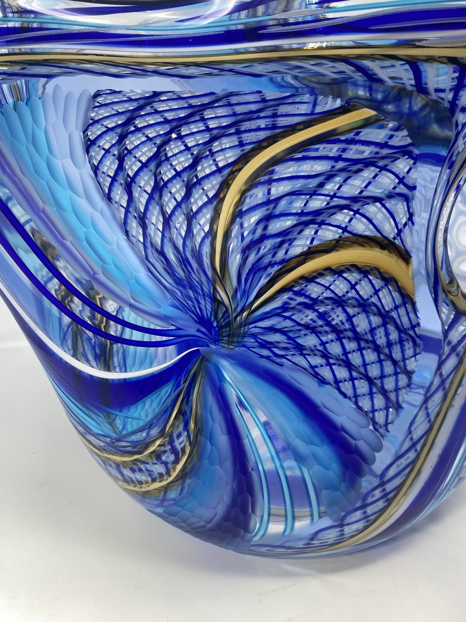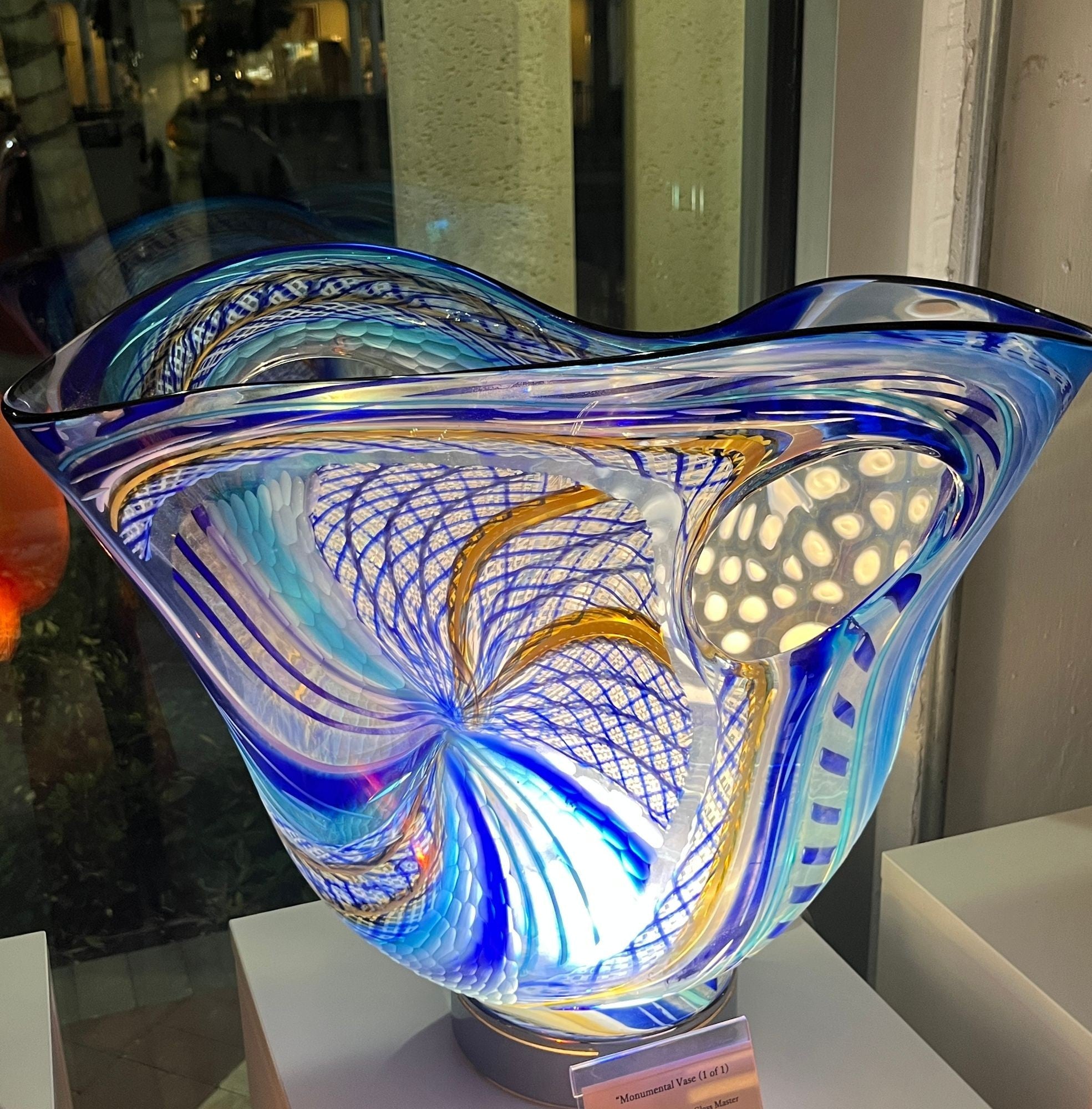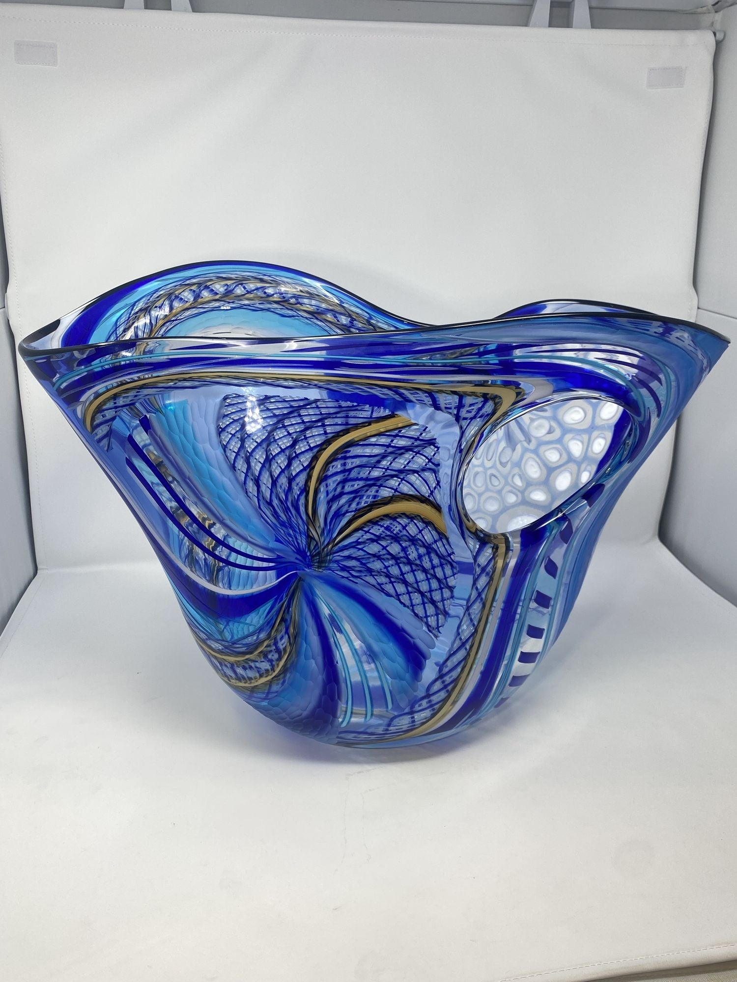 This fabulous vase was created by the Schiavon Team in Murano, Italy. Guaranteed to be "1 of 1". Beautiful colors. This monumental piece would be the focus of any room. Measures 14" x 19".