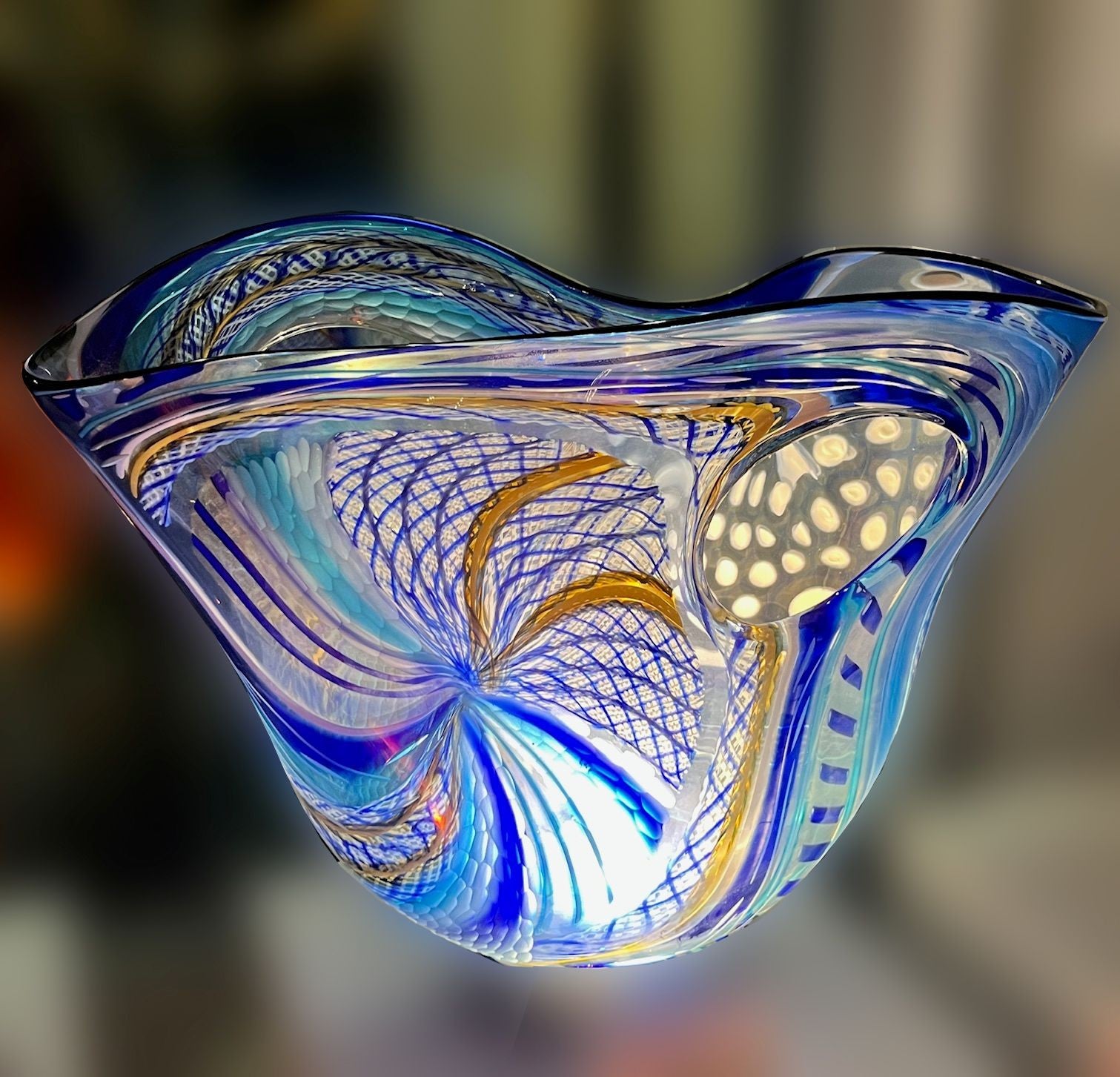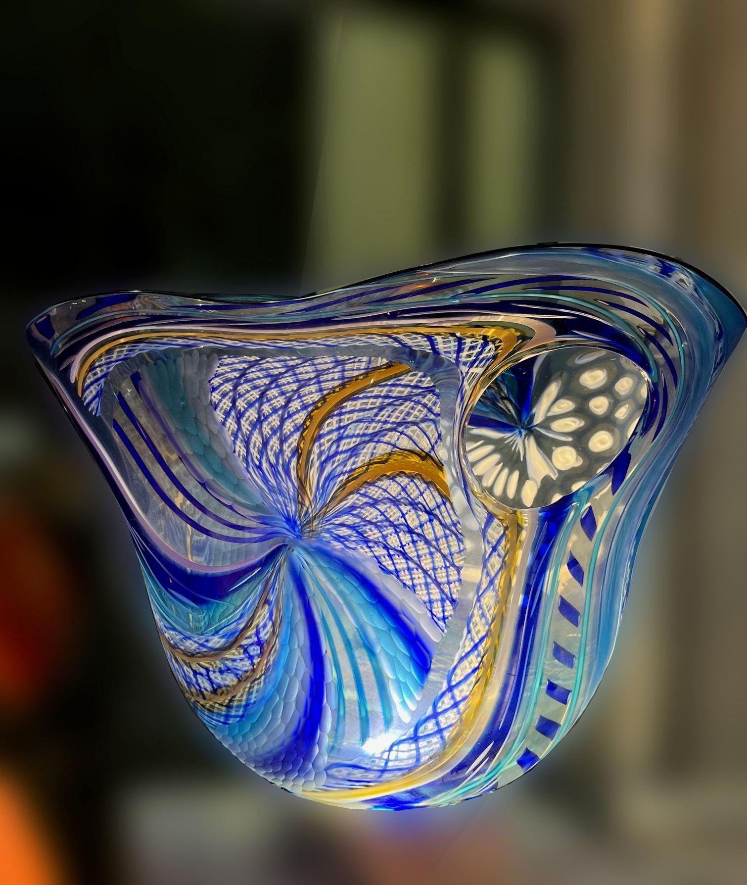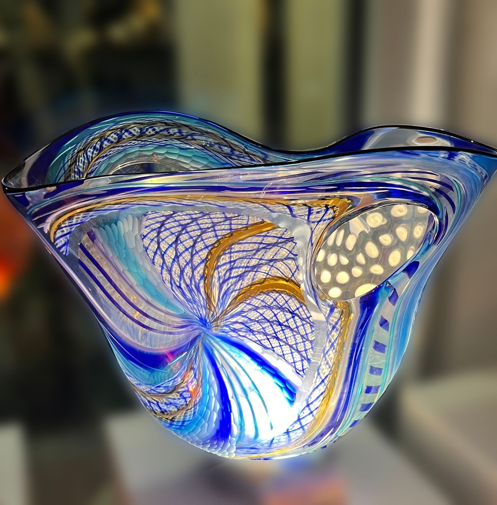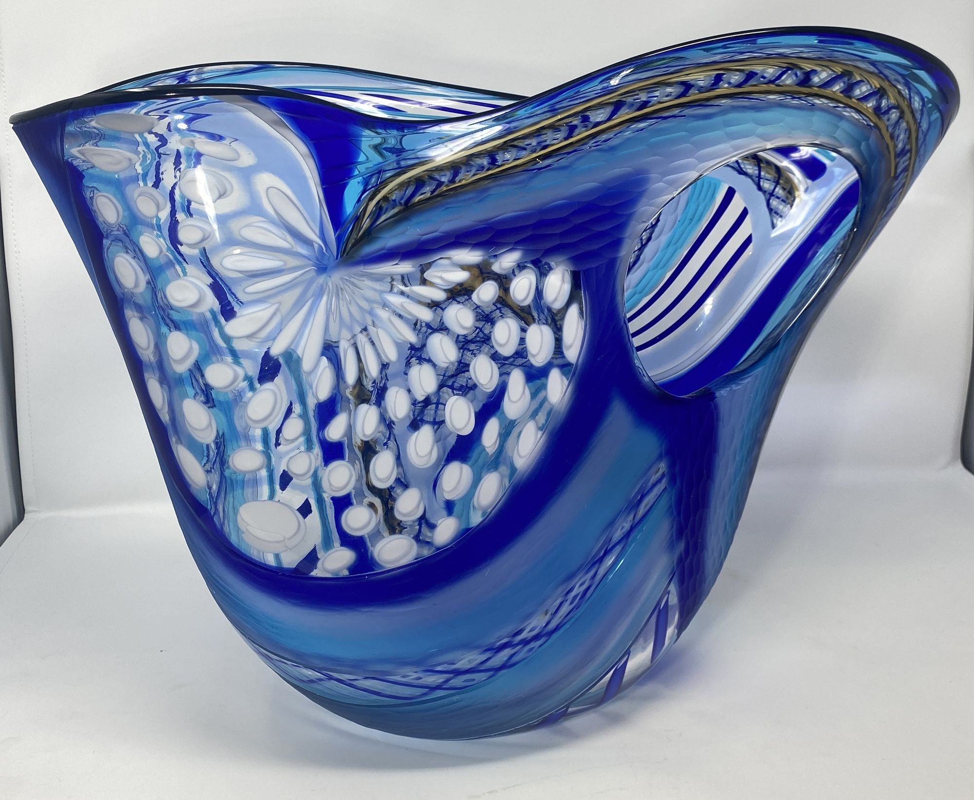 This fabulous vase was created by the Schiavon Team in Murano, Italy. Guaranteed to be "1 of 1". Beautiful colors. This monumental piece would be the focus of any room. Measures 14" x 19".