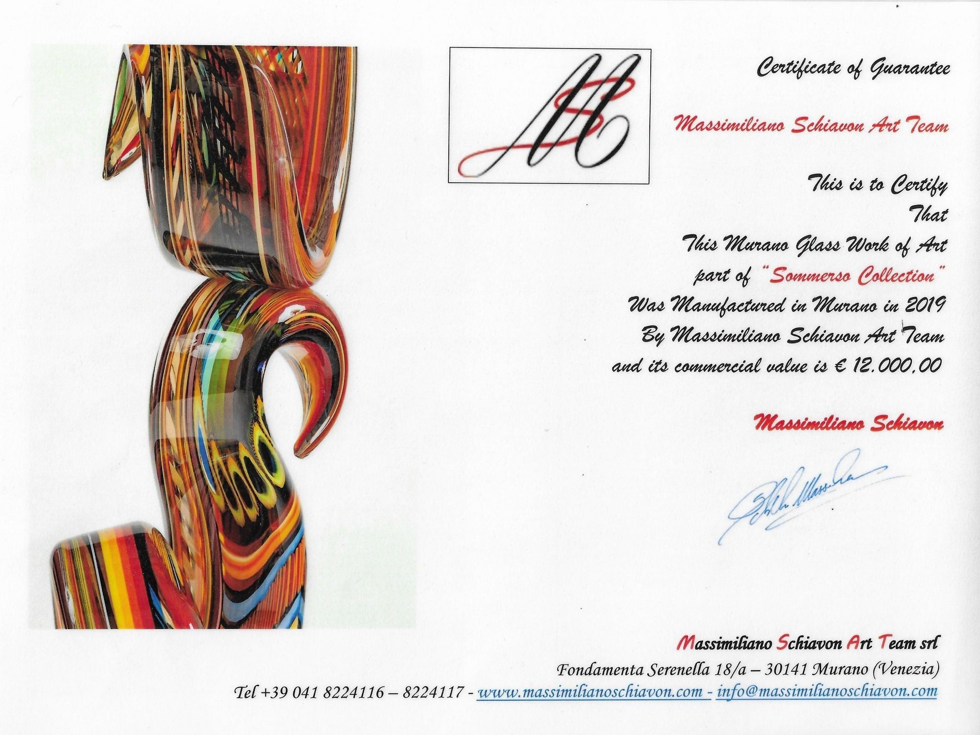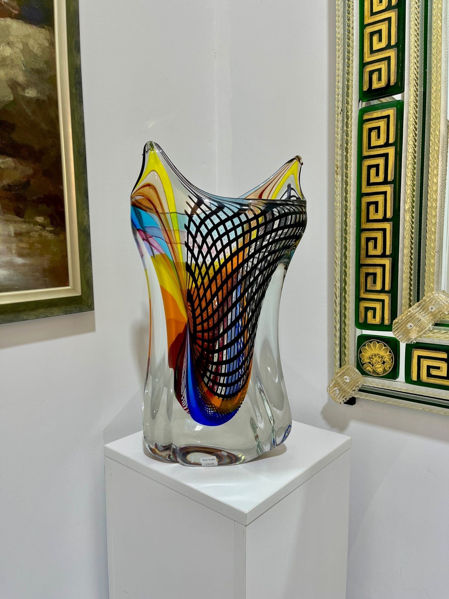 In Murano, the Schiavon Art Team is considered the most forward-thinking group of Glass Masters on the Island. Each piece is guaranteed to be the only one in the world, and is marked "1 of 1". Incredibly beautiful vase with exquisite coloring and detail. Our price for this line is lower than in Italy! Measures 20"h x 12"w x 5"d.