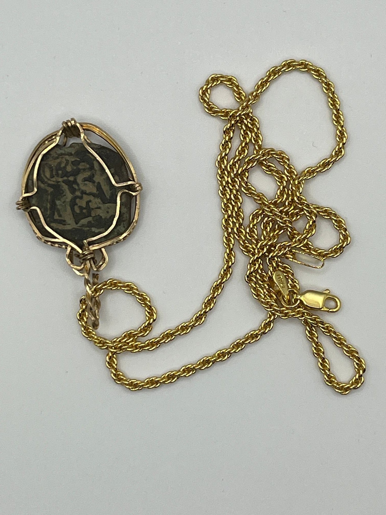 Own a piece of ancient history with this authentic bronze coin, expertly transformed into a stunning pendant. (#418)