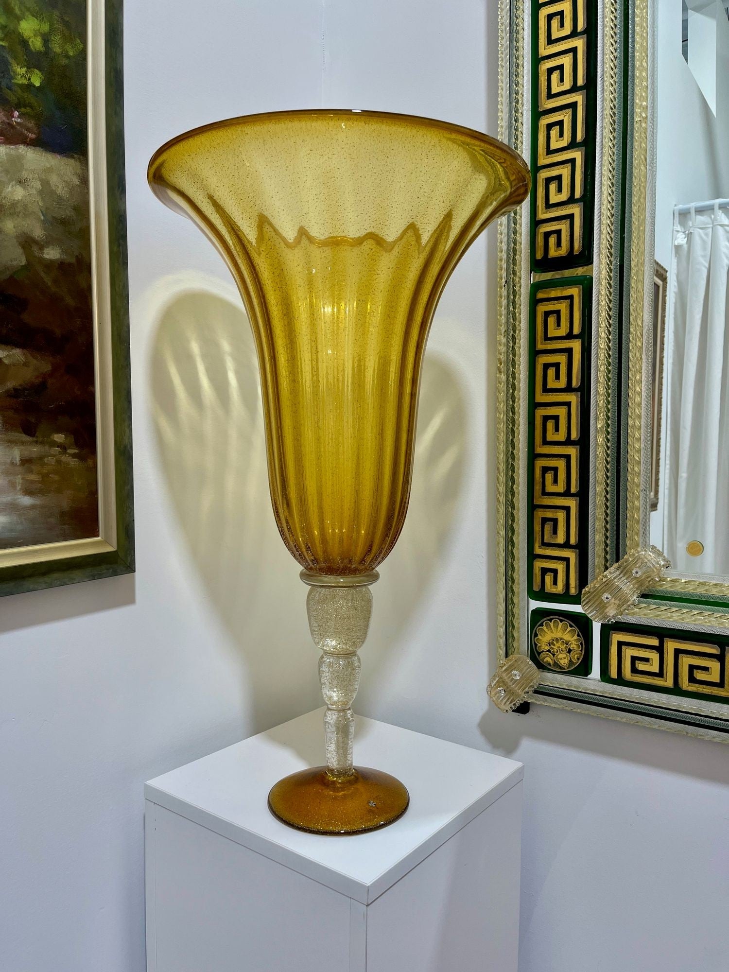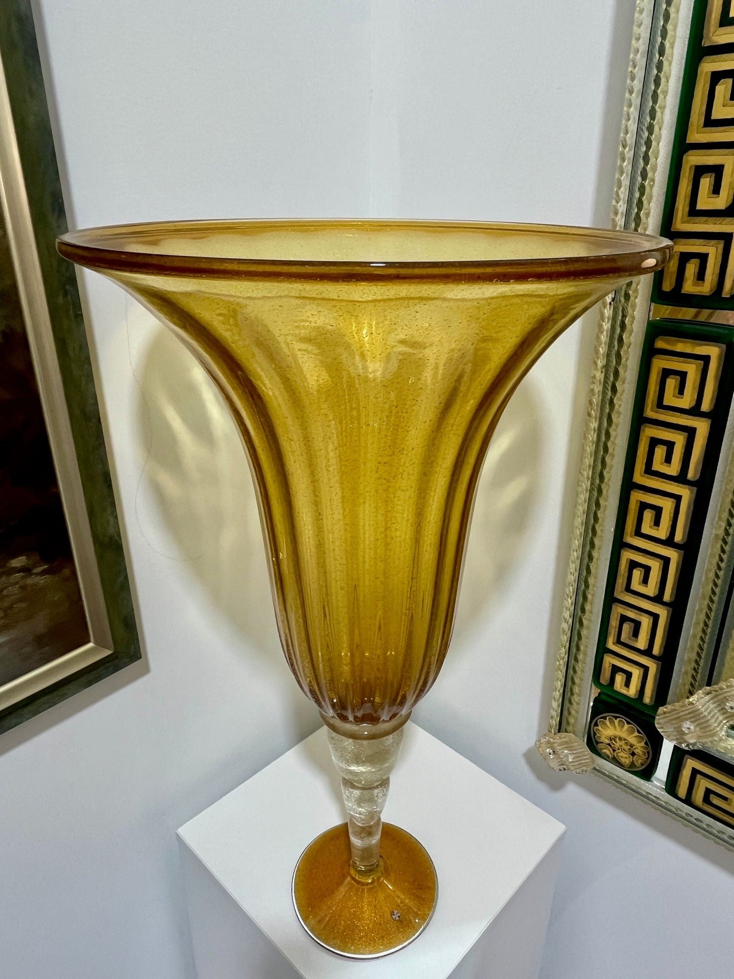 Very attractive Italian Glass Pedestal Vase. Measures over 25" tall. A great statement piece for a reasonable price!