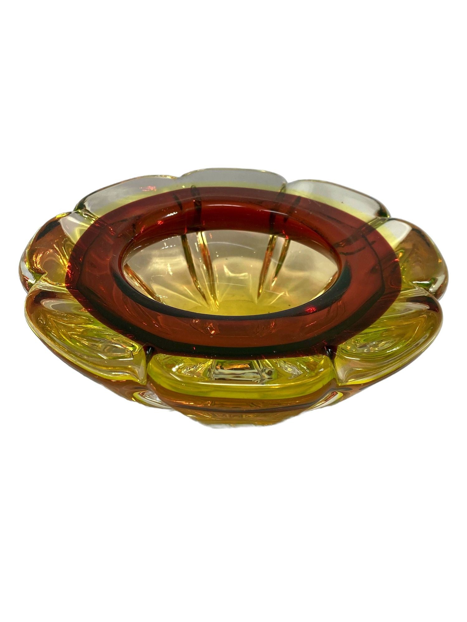 Very unusual and rare example of Uranium Glass made in Murano, Italy. In wonderful condition. Beautiful red and yellow coloring. Measures 7.5" across.